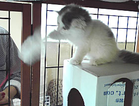 この仔猫に 会いに行ってきました~♪ 簡単にジャレて ↑ くれます。ww